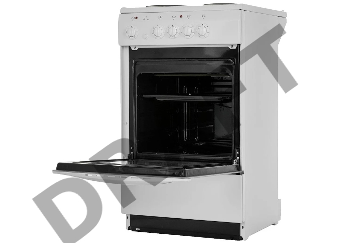 Плита электрическая DE LUXE 5004.12э кр белая ШхГхВ 50x50x85,конфорка на 2кВт,таймер,духовка с терморегулятором, грилем, вертелом с эл./приводом, подсветкой.белая