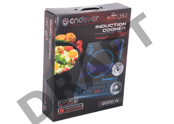Плита Электрическая Endever Skyline IP-28 2000Вт, цвет варочной поверхности черный, дно посуды от 12-28 см, 8 авто программ, таймер
