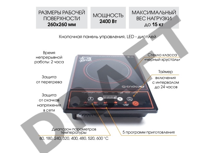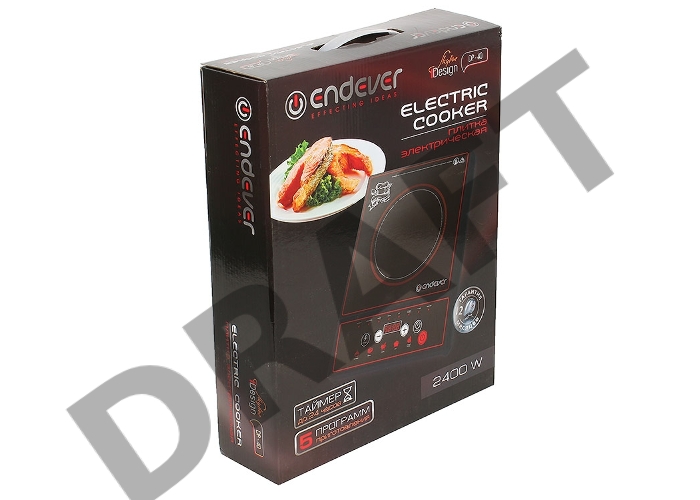 Плитка стеклокерамическая Endever Skyline DP-40, 2000Вт, дно посуды от 12-25 см, 7 автоматических программ, таймер, цвет черный
