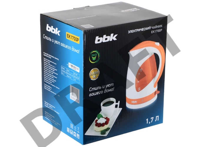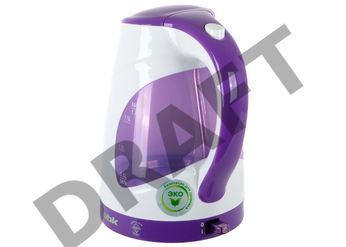 Чайник электрический BBK EK1700P 2200Вт, 1,7литра, пластик, дисковый нагр. элемент, LED подсветка, белый/фиолетовый