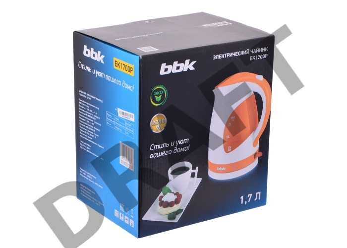 Чайник электрический BBK EK1700P 2200Вт, 1,7литра, пластик, дисковый нагр. элемент, LED подсветка,белый/оранжевый