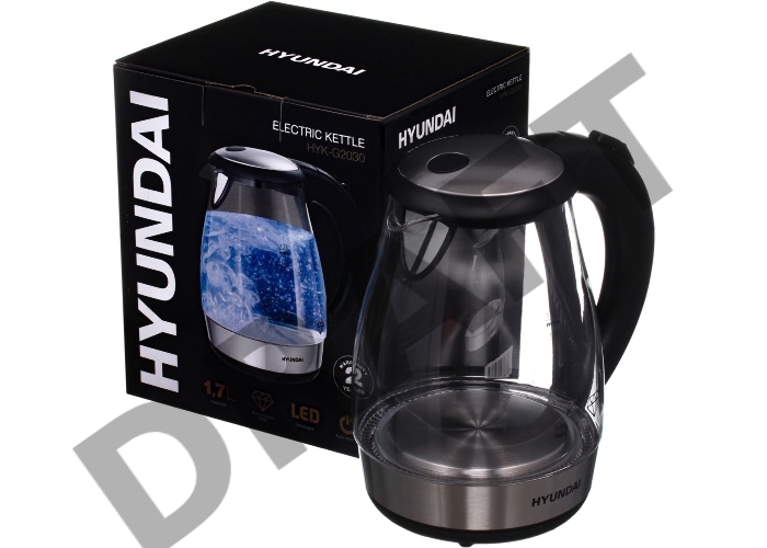 Чайник электрический Hyundai HYK-G2030 1.7л. 2200Вт черный (корпус: стекло)
