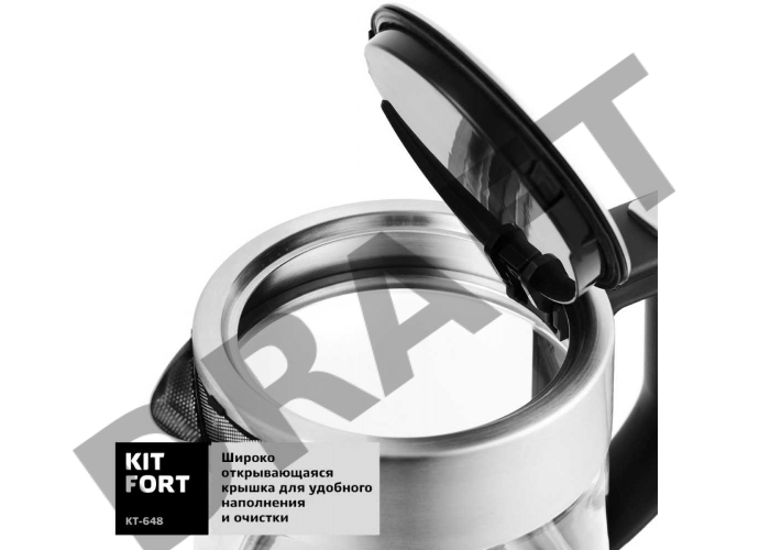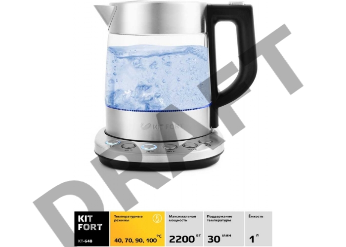 Чайник электрический Kitfort КТ-648 1л. 2200Вт нержавеющая сталь/черный (корпус: стекло)