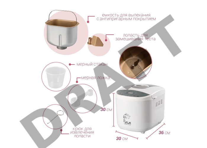 Хлебопечь электрическая VLK Palermo 5200, белый, мощность 650 Вт, вес выпечки 500/750/900 г, 19 программ приготовления, 2 шт/уп.