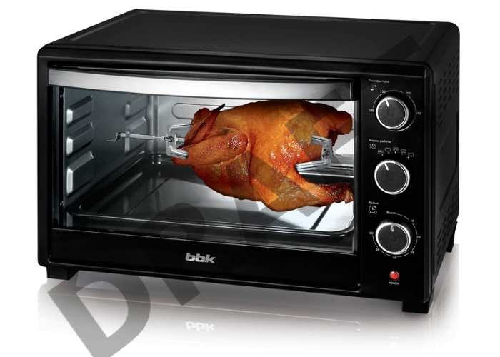 Мини-печь BBK OE3070M 30л, 1500Вт, тэновый гриль, механическое управление, ручка для открывания дверцы, гриль, жарка, запекание, регулировка температуры 100~250C, таймер со звуковым сигналом, эмалированный противень, решетка, съемная ручка для противня,