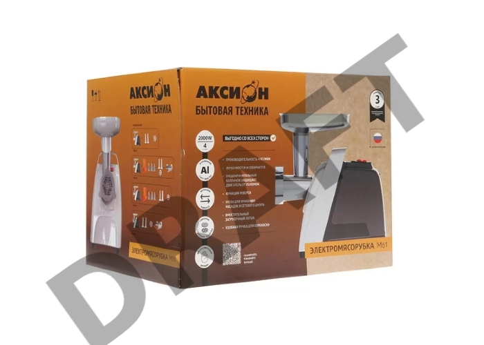 Мясорубка АКСИОН М61.04 Черно-серебристая, 2000 Вт, 3 кг/мин