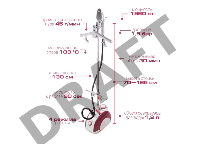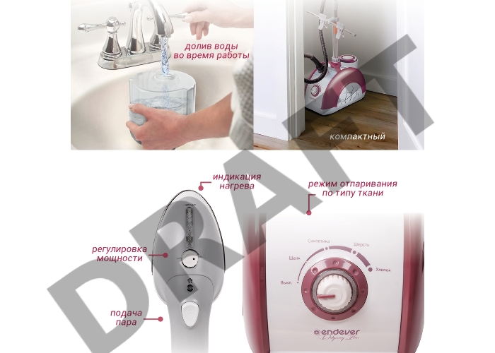 Отпариватель напольный Endever Odyssey Q-912 1960Вт красный/белый
