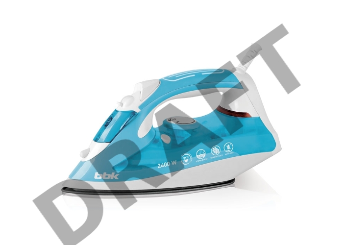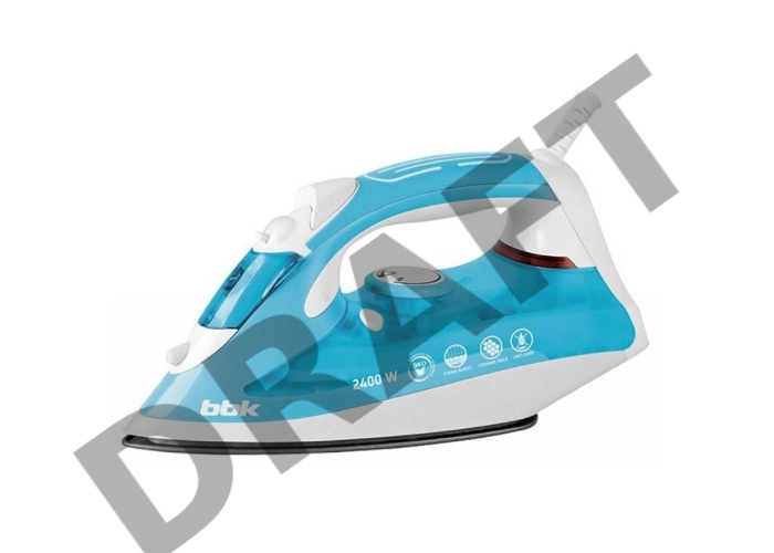 Утюг BBK ISE-2400 бирюзовый Мощность 2400 Вт, паровой удар, вертикальное отпаривание, плавные регулировки подачи пара и температуры, керамическое покрытие подошвы, Anti-calcium, Self-Cleaning, противокапельная система.