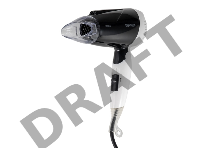 Фен Blackton Bt HD1204M Black-White Мощность 1200 Вт, Напряжение 220 В, 50 Гц, Регулировка воздушного потока 2, Регулировка температуры 3, Складная ручка, Защита от перегрева, Петля для подвешивания, Концентратор.