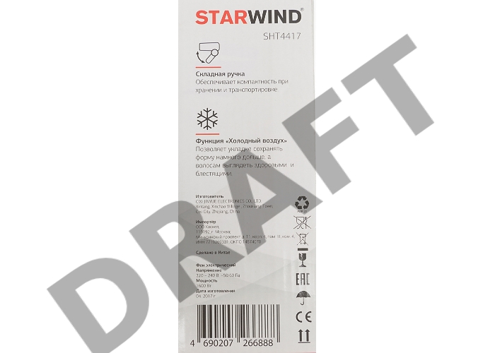 Фен Starwind SHT4417 1600Вт темно-коричневый/белый