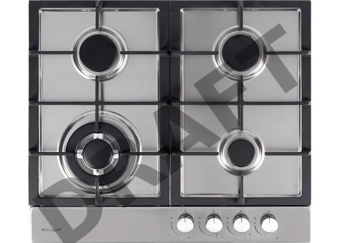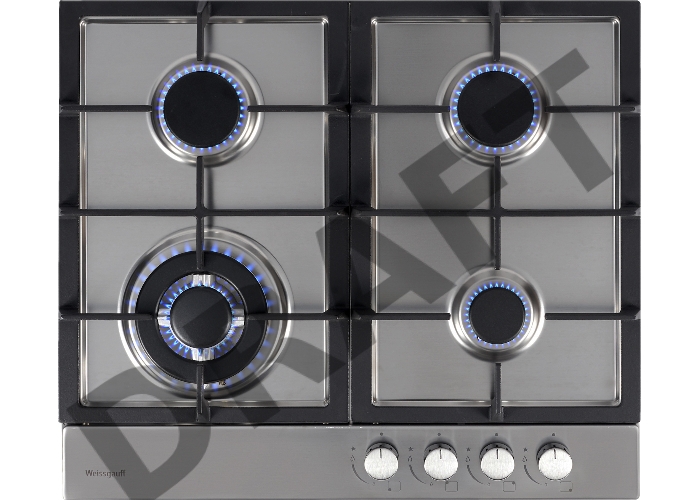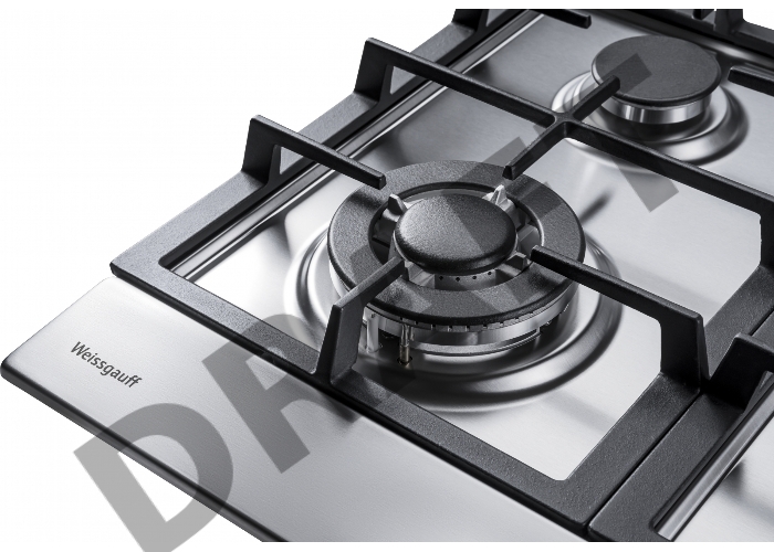 Встраиваемые газовые панели Weissgauff 60 см, газовая, независимая, поверхность из нержавеющей стали, автоподжиг, газ-контроль, WOK, жиклёры для баллонного газа, чугунные решетки, цвет-нержавеющая сталь