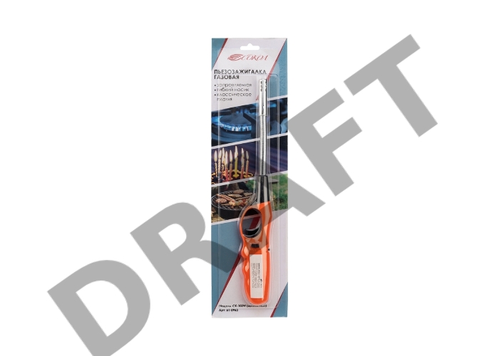 Бытовая газовая пьезозажигалка с классическим пламенем многоразовая (1 шт.) оранжевая СК-302W с гибким стержнем СОКОЛ