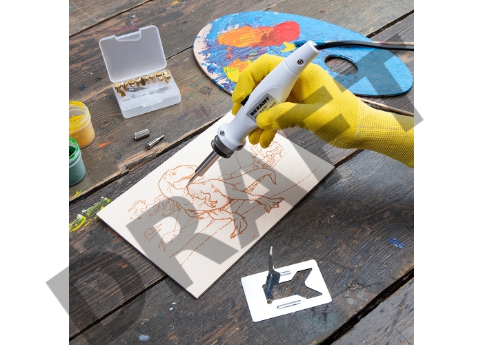 Выжигатель REXANT (набор паяльник-выжигатель), 22 насадки, подставка, 230 В, 20/50 Вт