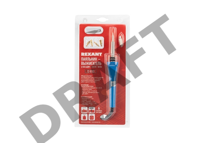 Выжигатель REXANT (набор паяльник-выжигатель), 6 насадок, подставка, 230 В/30 Вт