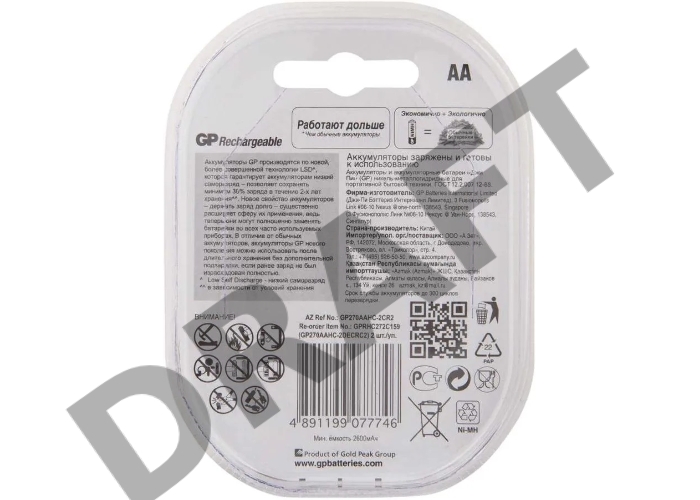 Аккумулятор GP 270AAHC Minions AA NiMH 2700mAh (2шт)
