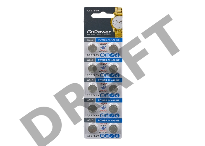 Батарейка GoPower G10/LR1130/LR54/389A/189 BL10 Alkaline 1.5V (10/100/3600) блистер (10 шт.)