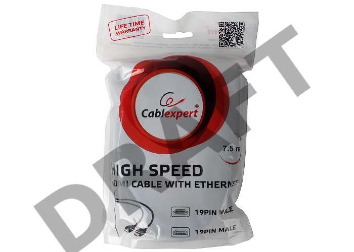 Кабель HDMI Gembird/Cablexpert, 7.5м, v1.4, 19M/19M, черный, позол.разъемы, экран, пакет CC-HDMI4-7.5M