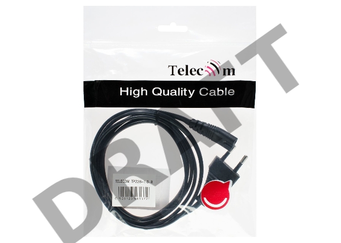 Кабель Telecom Кабель (TP228-IEC320-C7--CEE7/16-1.8-B) для аудио-видео техники IEC-320-C7--розетка 220V, 2-pin, 1.8м , черный 6926123461372