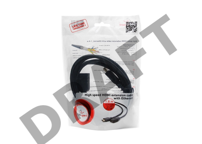 Кабель Удлинитель кабеля HDMI Cablexpert CC-HDMI4X-6, 1.8м, v2.0, 19M/19F, черный, позол.разъемы, экран, пакет