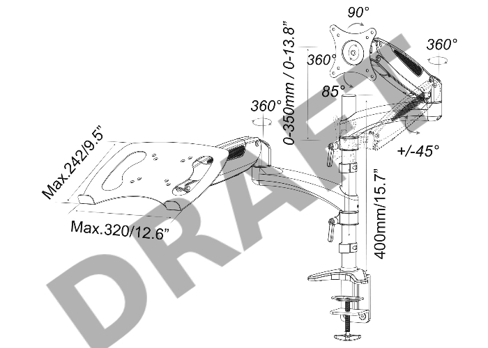 Кронштейн для монитора/ноутбука Cactus CS-VM-LH08-AL серебряный 13"-27" макс.8кг настольный поворот и наклон