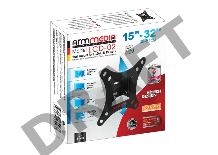Кронштейн для телевизора Arm Media LCD-02 черный 15"-32" макс.40кг настенный наклон