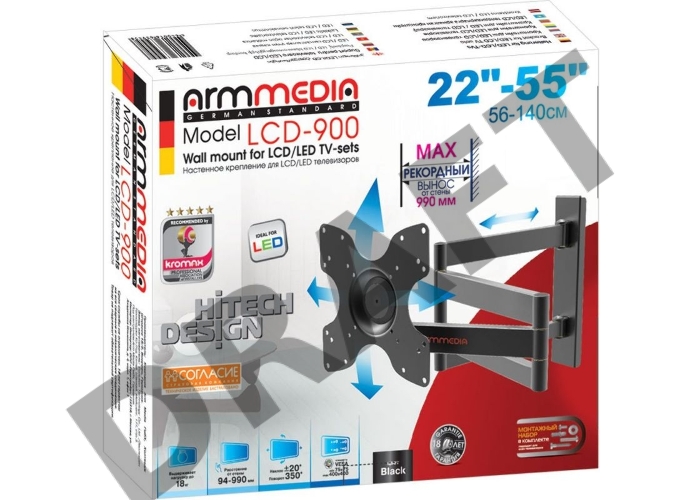 Кронштейн для телевизора Arm Media LCD-900 черный 22"-55" макс.18кг настенный поворот и наклон