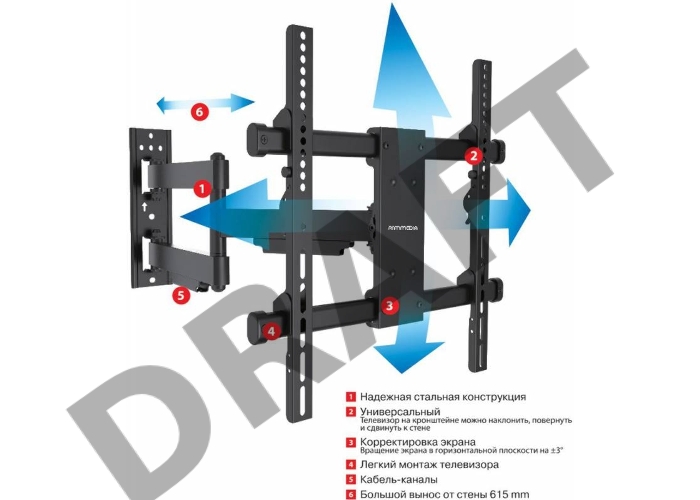 Кронштейн для телевизора Arm Media PARAMOUNT-40 черный 26"-65" макс.50кг настенный поворот и наклон
