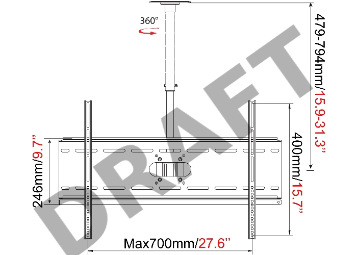 Кронштейн для телевизора Cactus CS-CP04-R черный 37"-70" макс.81.6кг потолочный поворот и наклон