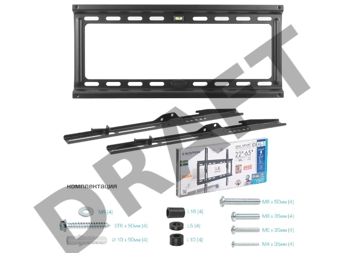 Кронштейн Kromax IDEAL-3 Black, 22"-65", max 50 кг, настенный, VESA 400x400 мм, тонкий профиль