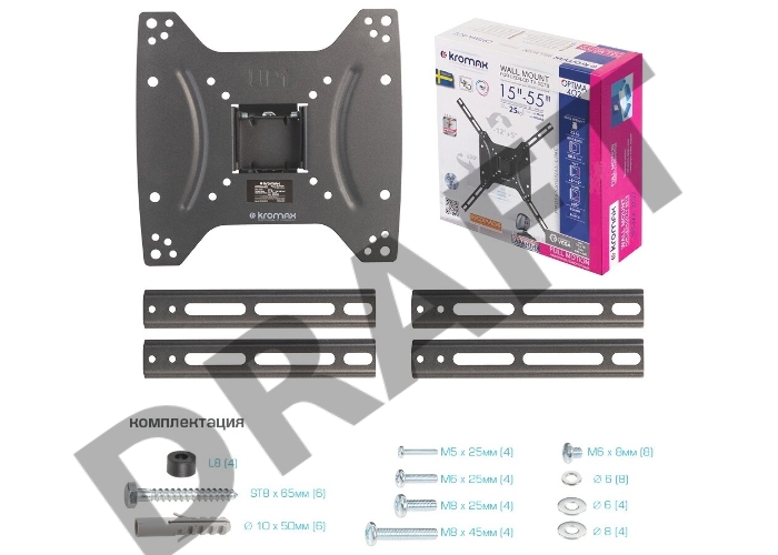 Кронштейн Kromax OPTIMA-402, 15"-55", max 25 кг, настенный, VESA 400x400 мм