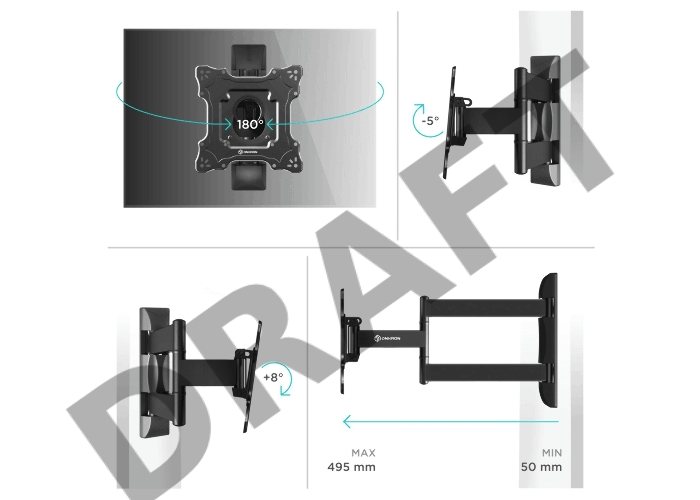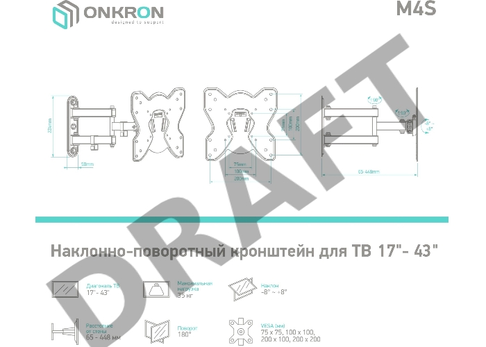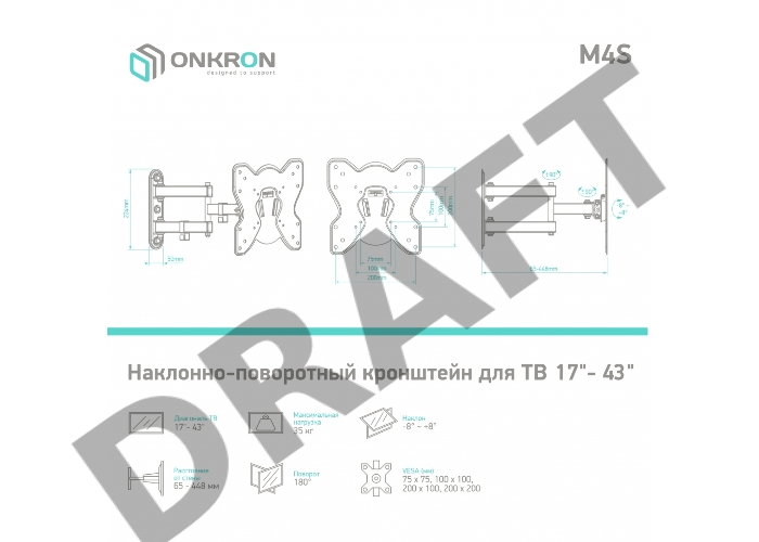 Кронштейн ONKRON M4S для телевизора 17"-43" наклонно-поворотный, чёрный