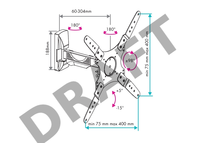 Кронштейн VLK TRENTO-23 black для LED/LCD телевизоров 20"-55", max 25 кг, настенный
