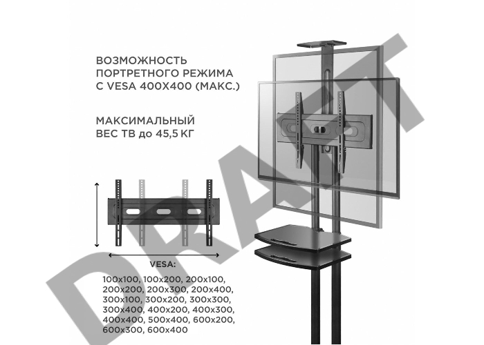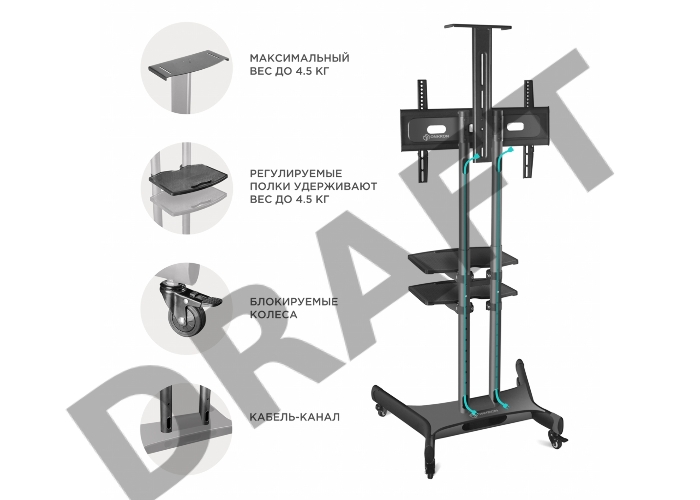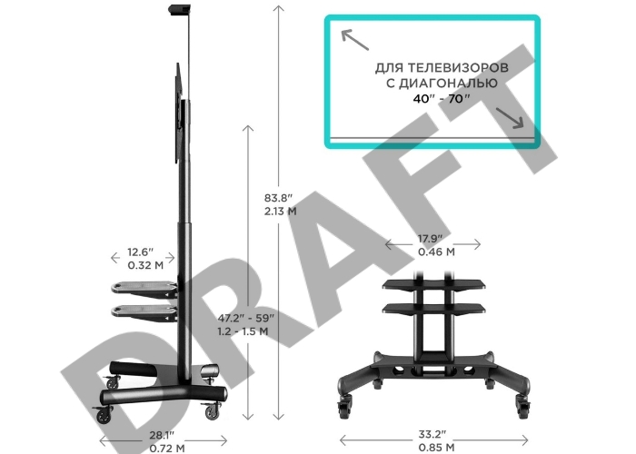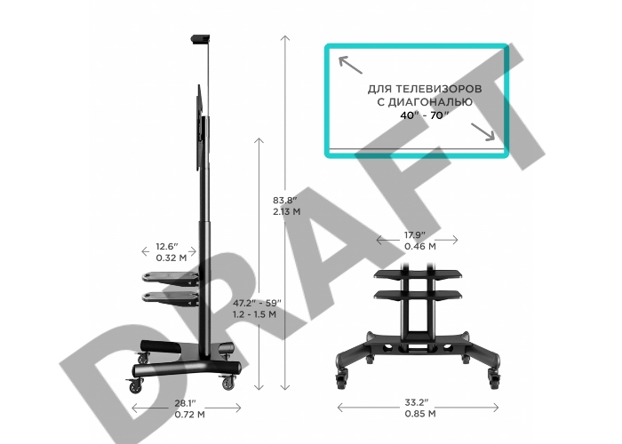 Стойка для телевизора с кронштейном ONKRON TS1552 40"-70", мобильная, чёрная
