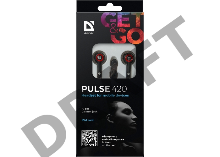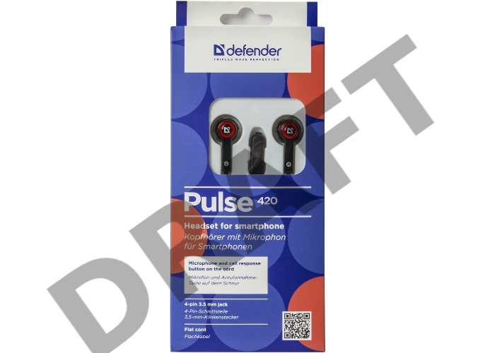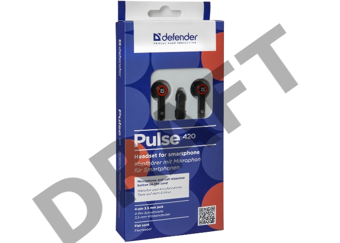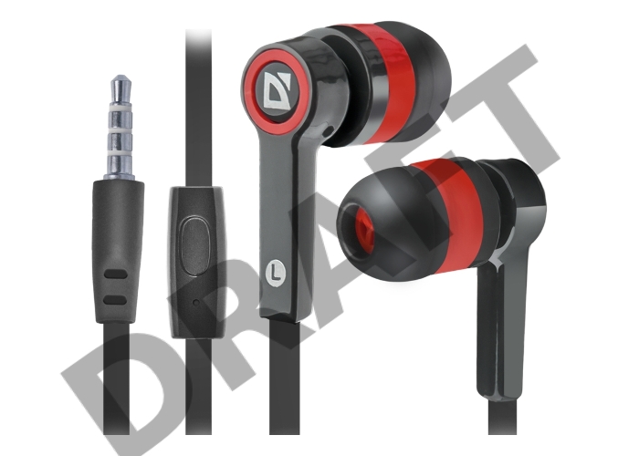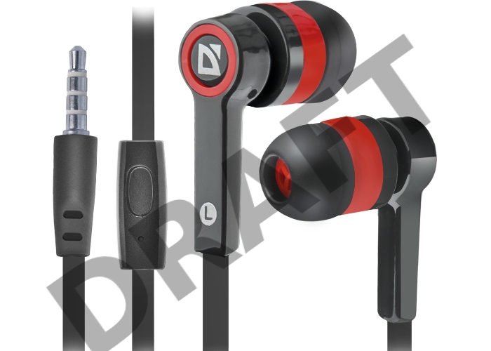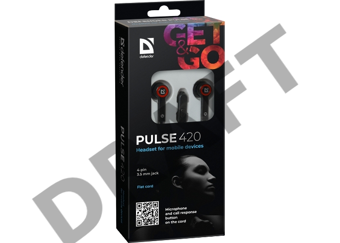 Наушники DEFENDER Pulse 420 черный + красный, вставки 63424