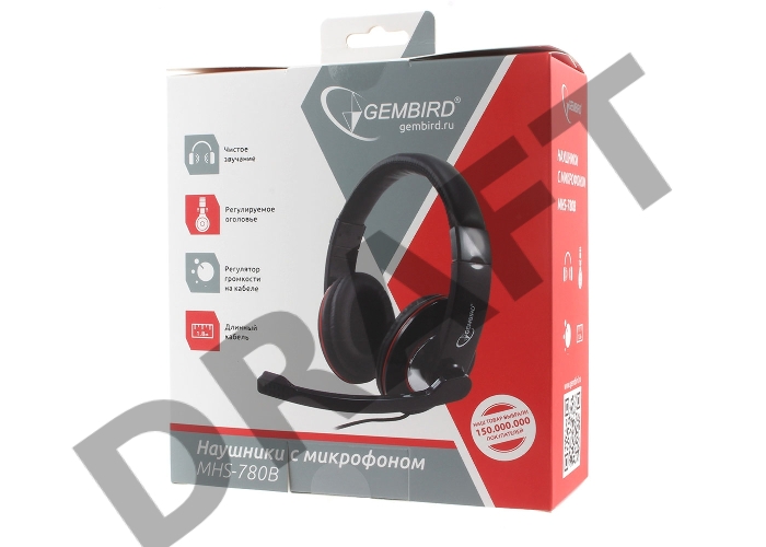 Наушники Gembird MHS-780B Гарнитура стерео , черный, регулятор громкости