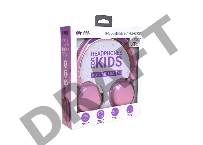 Наушники Hiper LUCKY Pink детские 20-20000 Гц, 95 дБ (безопасно для детей), 32 Ом, jack 3.5 mm, цвет: розовый