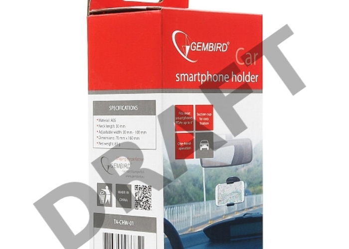 Держатель для мобильного устройства Gembird TA-CHW-01 Автомобильный кронштейн для смартфона TA-CHW-01, на присоске, до 6"