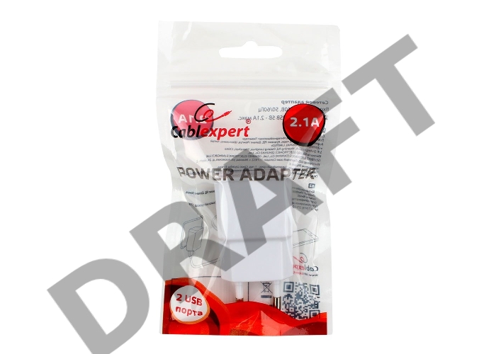 Адаптер питания Cablexpert MP3A-PC-11 100/220V - 5V USB 2 порта, 2.1A, белый
