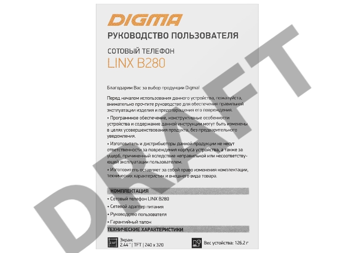 Мобильный телефон Digma LINX B280 32Mb серый моноблок 2.8" 240x320 0.08Mpix GSM900/1800