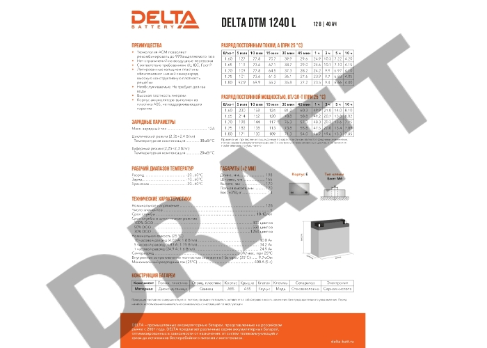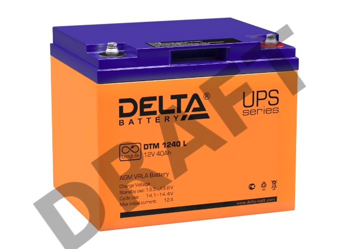 Батарея Delta DTM 1240 L (12V, 40Ah) с увеличенным сроком службы (10 лет)