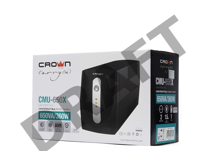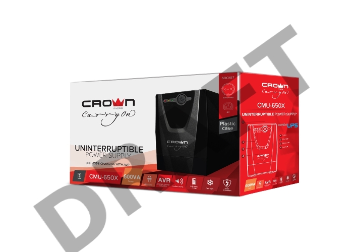 Источник бесперебойного питания Crown CMU-650X (600ВА/300 Вт; Off-Line; 1хEuro+1хIEC-320 резервным питанием и фильтрацией; 12V/7AH х 1; пластик)