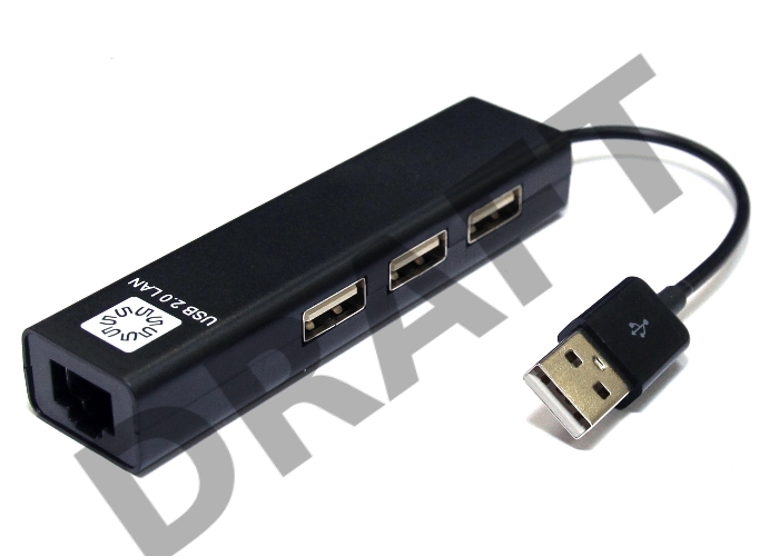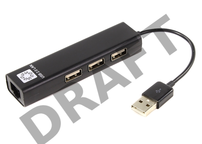 Кабель-адаптер 5bites UA2-45-06BK USB2.0 / 3*USB2.0 / RJ45 100MB / BLACK