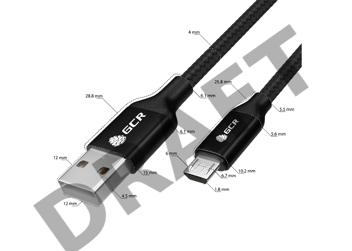 Кабель GCR QC 1.5m MicroUSB, быстрая зарядка, черный нейлон, AL корпус черный, черный ПВХ, 28/24 AWG, GCR-52476