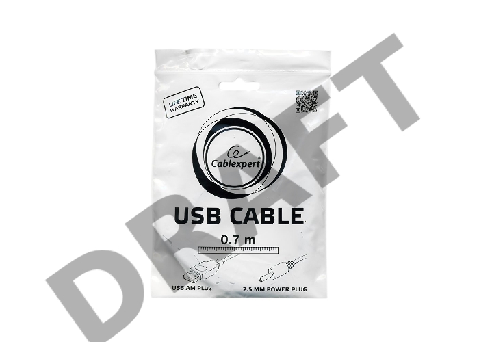 Кабель Gembird/Cablexpert CC-USB-AMP25-0.7M AM/DC 2,5мм 5V 2A (для планшетов Android), 0.7м, экран, черный, пакет