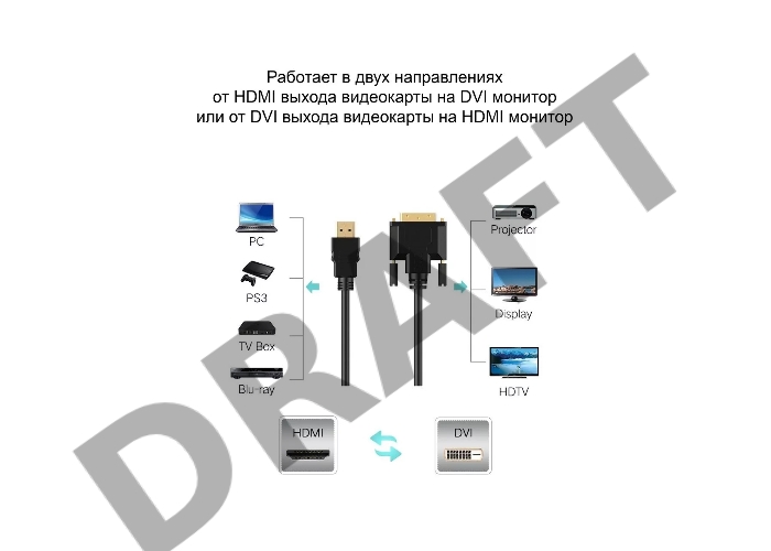 Кабель HDMI to DVI-D (19M -25M) 2м, TV-COM, 2 фильтра