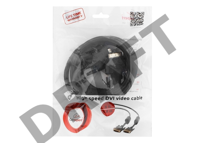 Кабель Кабель DVI-D dual link Gembird/Cablexpert , 25M/25M, 1.8м, черный, экран, феррит.кольца, пакет(CC-DVI2-BK-6)