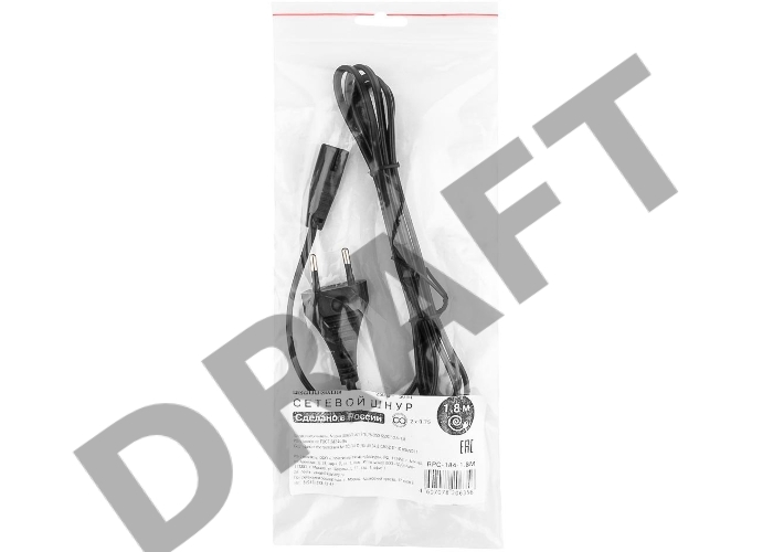 Кабель питания для ноутбуков, аудио/видео техники Cablexpert/Gembird PC-184/2-1.8М, 1.8м, 2-pin, черный, пакет