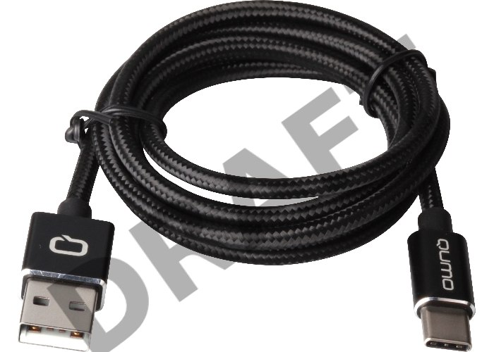 Кабель Qumo Type-С кабель, 1м, USB 2.0, 5В, 2А, 10Вт, PVC оплетка, PVC molded коннектор, черный