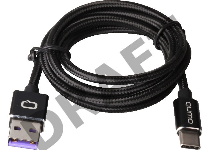 Кабель Qumo Type-С кабель, 1м, USB 2.0, 5В, 5А, 25Вт, тканевая оплетка, стальной коннектор, черный