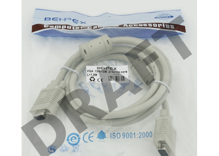 Кабель VGA VGA HD15 (m)/VGA HD15 (m) 1.8м феррит.кольца экран. Ningbo